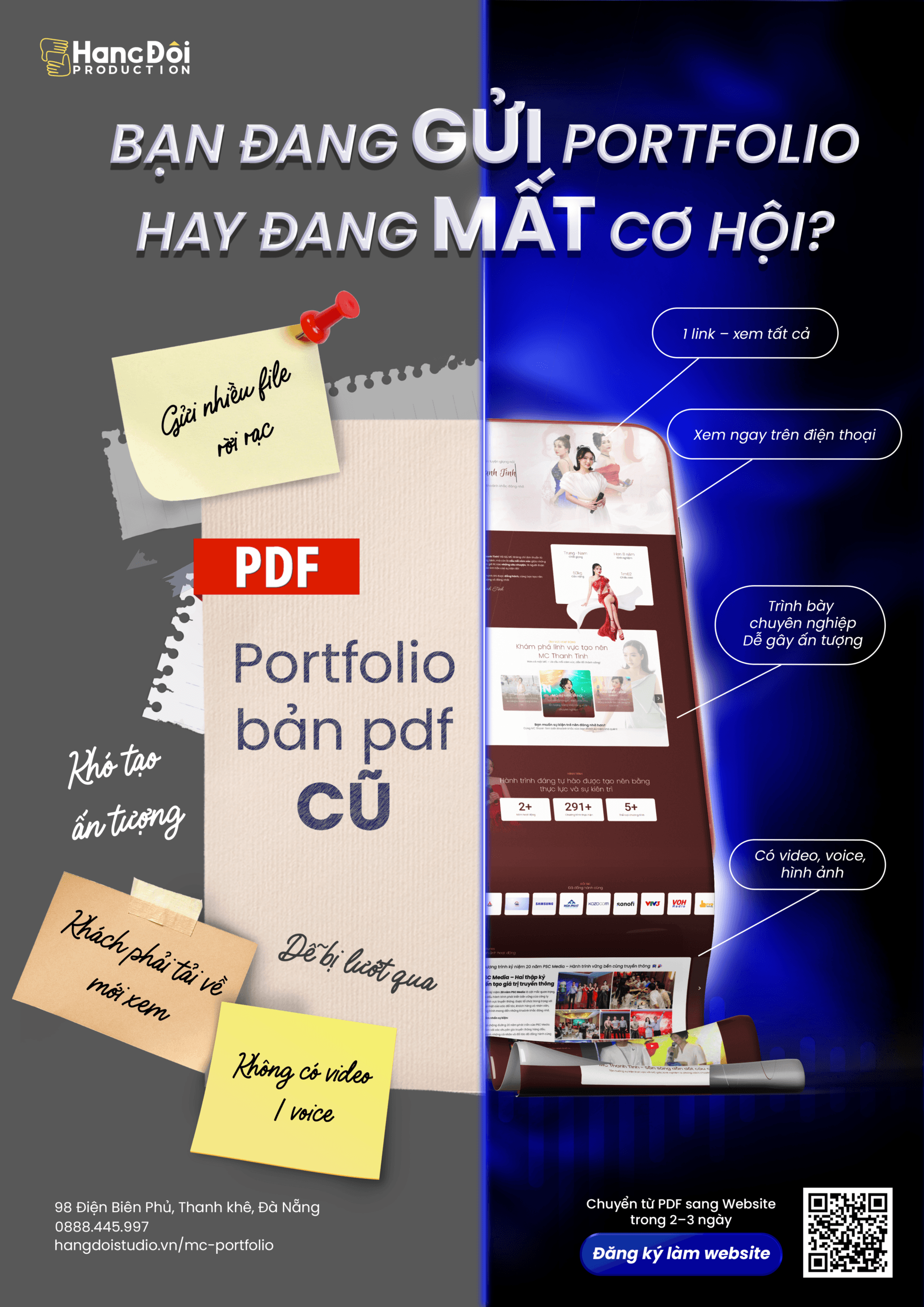 Portfolio web chuyên nghiệp giúp bạn nổi bật hơn so với các MC chỉ dùng Facebook hoặc PDF.